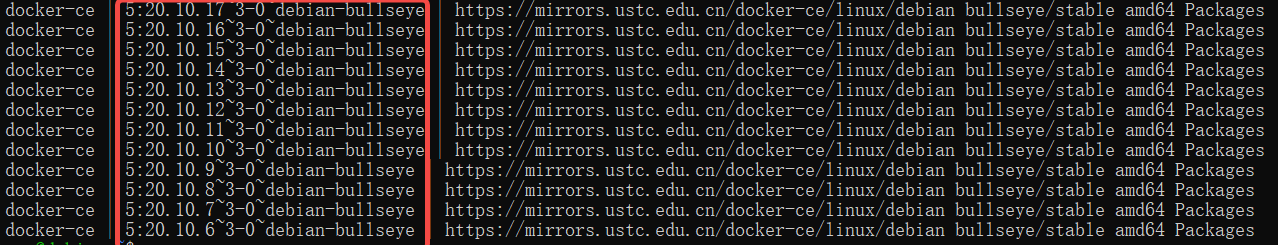 如果你要安装版本 5:20.10.17~3-0~debian-bullseye